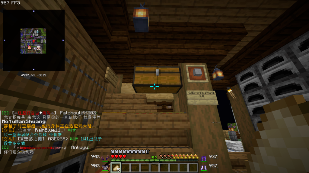 在仓库中你可以获取大多数材料节省极大的时间,仓库是共用的,有需要的拿多少用多少,也如果少了什么,是大家一起去补的,以求一个为每个人提供便利的材料选择。如果你想在露港建设大型建筑,需要用很多材料,提前和GeliMolearal(格黎)报备,不会不让大家用,但是提前说一下便可。