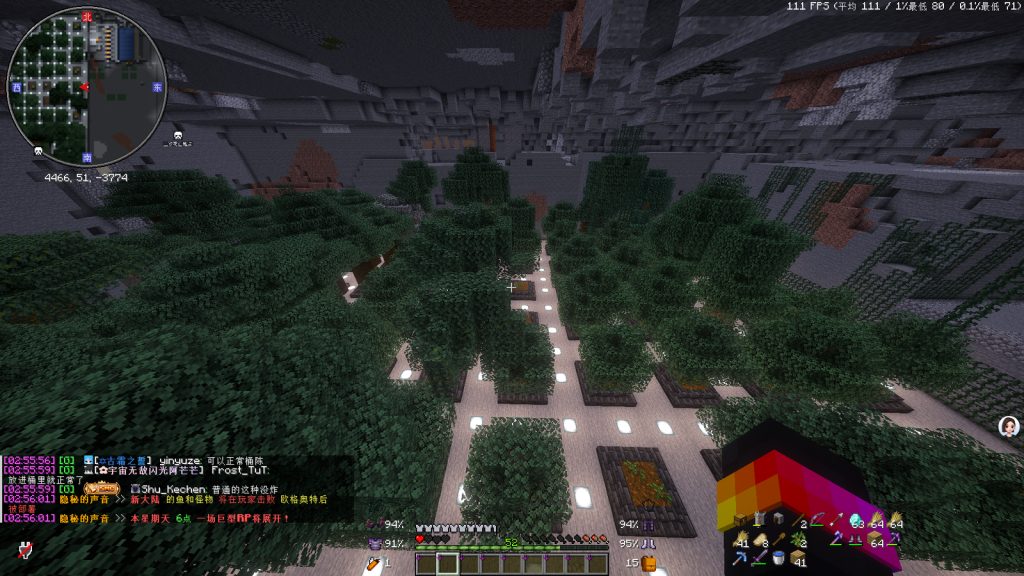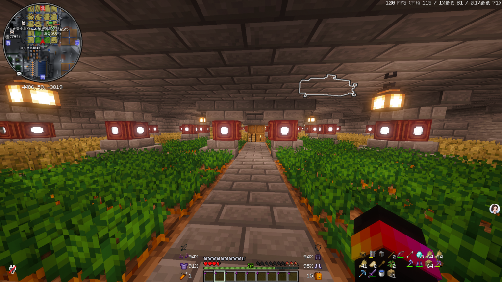 坐标:x4466 y51 z-3774 需乘绿宝石电梯下到农场